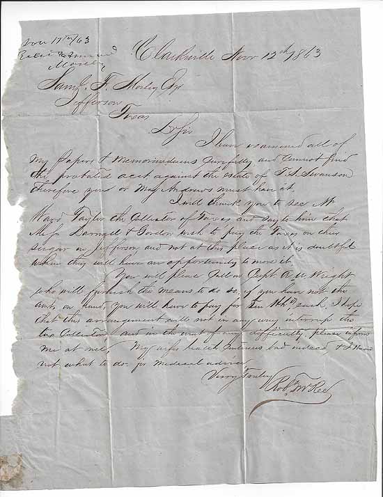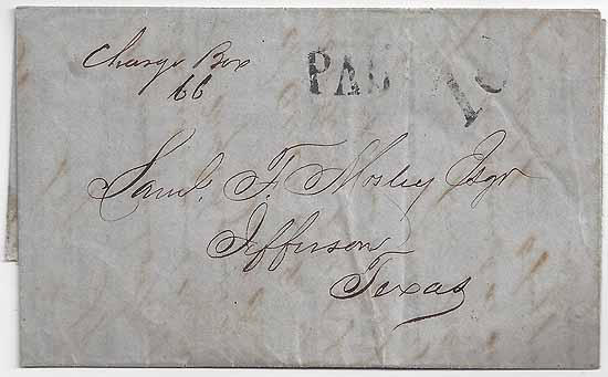 Mosley Esqr, Jefferson, Texas. The letter is a short business letter
