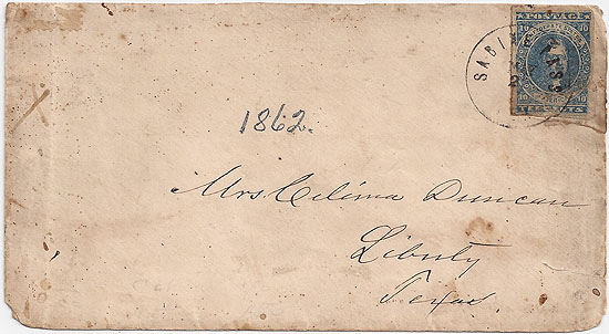 CDS 2 MAY (1862). Addressed to Mrs. Celina Duncan, Liberty, Texas.