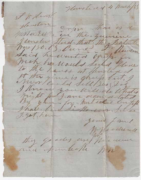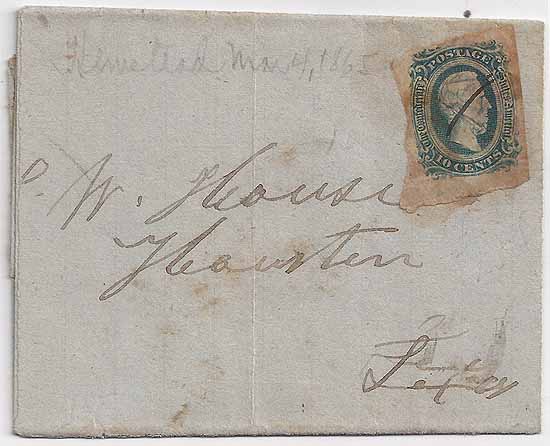 W. House, Houston, Texas. Dateline of the letter and period receiving