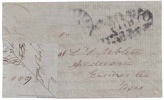 cover was sent by William Henry Neblett (1826-1871) home to his wife