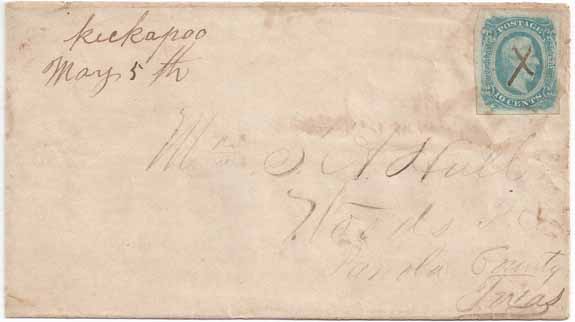 CSA #12 (AD) (4-Margin) Pen-Canceled and manuscrit "Kickapoo (Texas) May 5th"