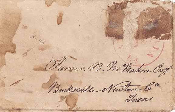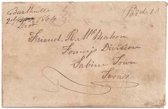 cover with manuscript "Burkville (Texas) 24 DEC 1864" and manuscript