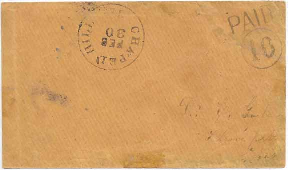 Stampless PAID cover with the Chapel Hill, Tex CDS 30 FEB and handstamp PAID 10