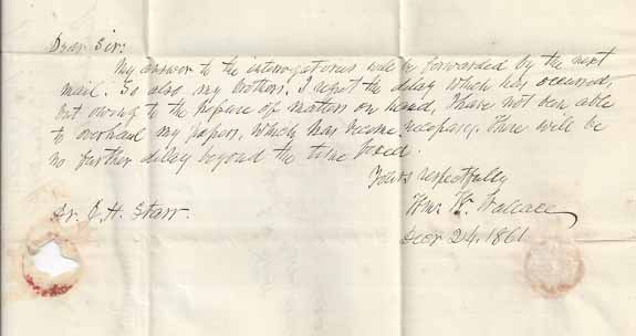 Period receiving docketing dates the cover to 1861. Folded letter