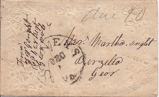 floral design around the borders. Addressed to Mrs. Martha Inglet,