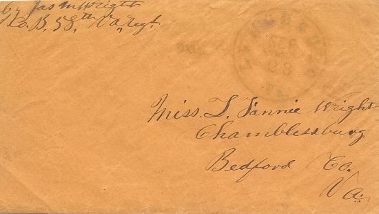 Chamblessburg, Bedford Co., Va. Endorsed at upper left “Jas M. Wright, Co B, 58th Va