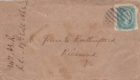 to John C. Rutherfoord, Richmond, Va. The cover is dated in Sept 1863