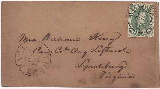 addressed to Mrs. William King Care Col Aug Leftwich, Lynchburg,