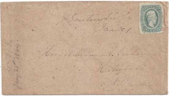 receiving docketing at the left dates the cover to 1864. Coarse brown