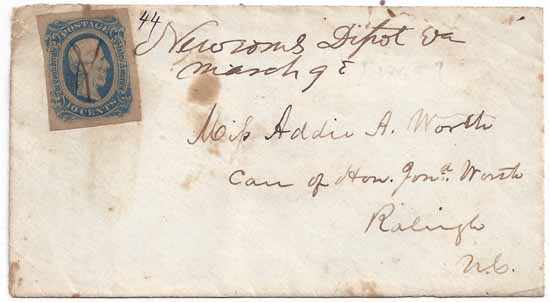 Roanoke Railroad Addressed to Miss Addie A. Worth Care of Hon