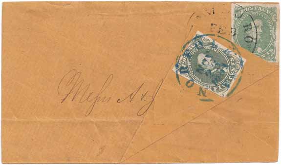 CDS 26 NOV 1861. The inside use also has a colorless embossed advertising oval for the Citizen's Bank of Va in Norfolk. Addressed to R. Chapman Esquire, Cashier, Tarboro, N.