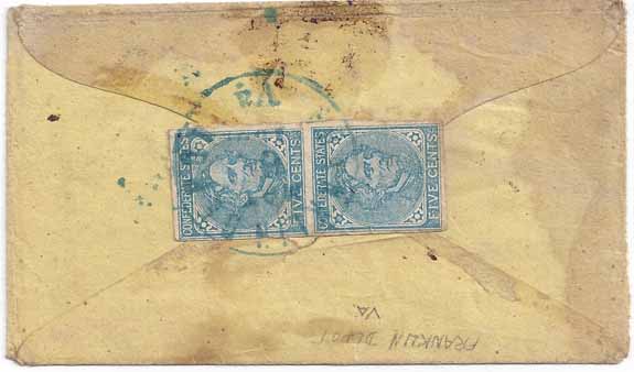 first use. The second use stamps are tied by the BLUE Franklin Depot, Va CDS