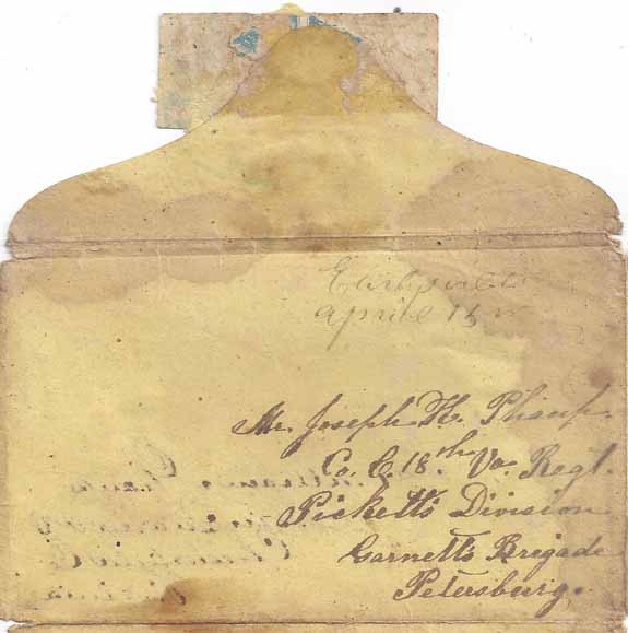 The cover is dated shortly before Gettysburg. The 18th Va Inf, as