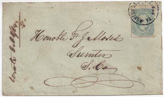 F. J. Moses, Sumter S. Ca. Period receiving docketing at left. Very