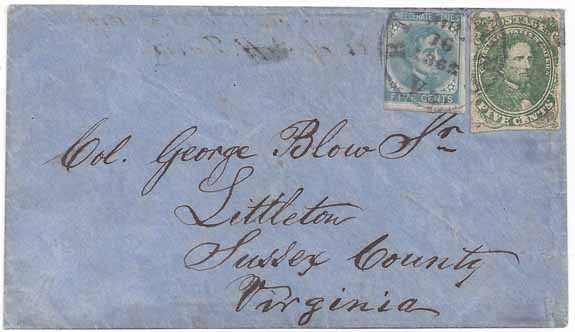 CDS Powell Type 3a 16 JUL 1862. Blue paper cover addressed to Col