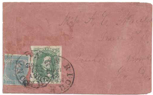 combination to make the 10c rate over 500 miles. The stamps are tied