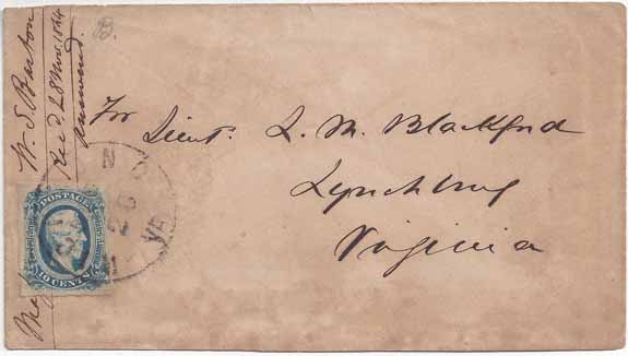 addressed to Lieut L. M. Blackford, Lynchburg, Virginia. Period