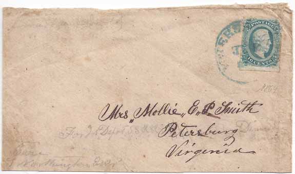 CSA #11 (AD) (margin just a little irregular at the right and just touching at the left) tied by the BLUE Petersburg, Va CDS (date