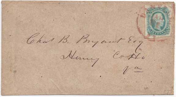 Co. Ho., Va. The red Danville postmark is rarely seen. Very clean cover.