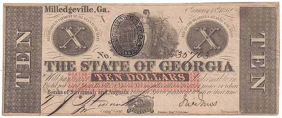 $10.00 Note State of Georgia (Cr-4) 18962. Ceres (center) XF. | $60.00 |