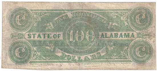| CC2372 | $100.00 Note The State of Alabama (Cr-12) 1864. Group of Four Indians with Camp Fire (center), Alabama State Seal (lower left), Seated Indian Maiden (lower right) F-VF. |