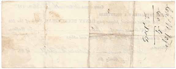 Union Civil War Sutler's Script - Payment Note for $2.20 to Henry Buckingham Sutler of the 4th Reg. R. I. Vols, Camp near Portsmouth, Va Oct 25, 1863. Signed by Charles W. Teft of Co G and witnessed by C. T. Bowen Com'g Co. F-VF.