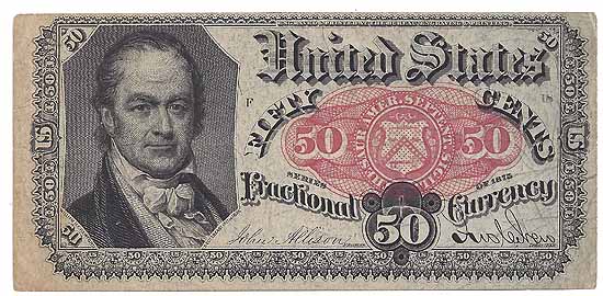 USA 50c Fractional Currency Fifth Issue 1874-1876. Portrait of William H. Crawford (1772-1834), Secretary of the Treasury 1816-1825. XF. | $75.00 |