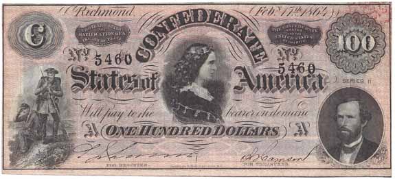 CC2856 | CSA $100.00 Note (Lucy Pickens, Two Soldiers, and George W. Randolph) Subtype Cr-494 Series II AU. |