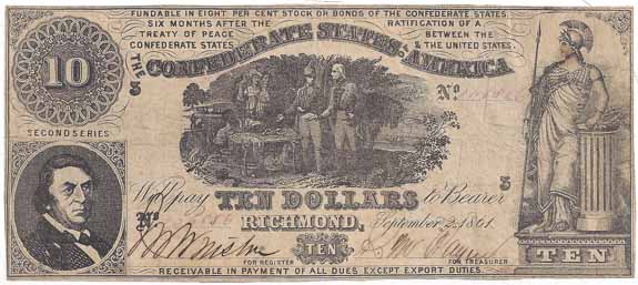 | T30 | CC2882 | CSA $10.00 Note (Sweet Potato Dinner, R. M. T. Hunter, Minerva) Subtype Cr-239 Second Series VF CC (Cut Cancels sealed expertly from the back). |