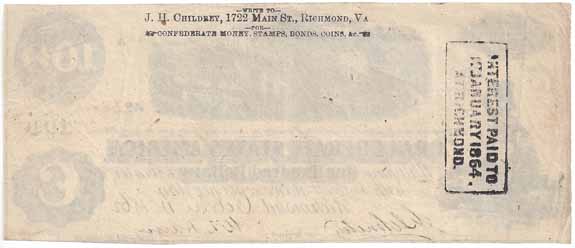 below A, No Watermark. Interest PAID at Richmond backstamp 1864. On the