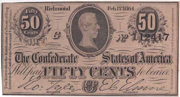 | T72 | CC2944 | CSA 50c Fractional Note (Jefferson Davis) Subtype Cr-578 1st SERIES VF-XF. |
