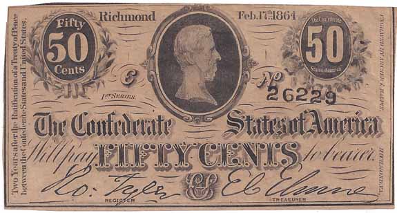 | T72 | CC2963 | CSA 50c Fractional Note (Jefferson Davis) Subtype Cr-578 1st SERIES VF. |