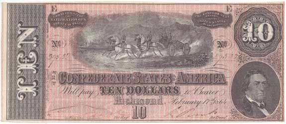 | T68 | CC2970 | CSA $10.00 Note (Horses Pulling Cannon, R.M.T. Hunter) Subtype Cr-552 10 Series CU (Choice Uncirculated). |