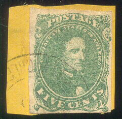 #1 Stone 2 USED (4-Margin) tied to small orange paper