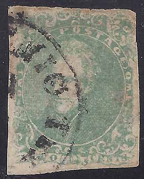 CSA #3 USED (4-Margin but a bit close at top right and some very minor edge toning at top) San Antonio, Tex CDS. Small thins and a minor crease which do not visibly detract from an overall very neat appearance. This stamp with Texas usage is SCARCE. CSA Certificate 1994. |