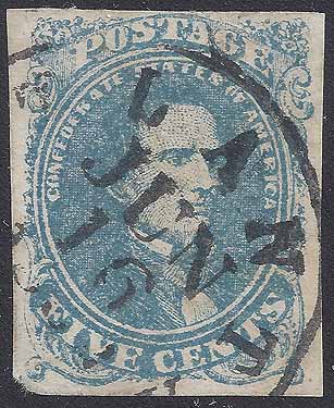 CSA #4 Stone 2 Position 14 USED (4-Margin) with the Atlanta, Ga CDS 16 JUN 1862. Minor corner clip at the lower left in the margin only. |
