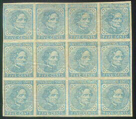 CSA #7 Block of 12 (3 Rows of 4) UNUSED (4-Margin showing a very coarse printing with multiple random printing flaws) OG NH with gum creases. |
