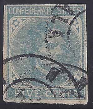 CSA #7 USED (margin just touches at the top and an exceptionally coarse printing on very thick local paper) with three partial strikes of the Mobile, Ala CDS (date not apparent). |