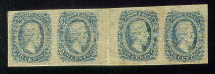 CSA #11 (AD) UNUSED Horz Strip of 4 with Gutter (4-Margin but close at the top left) OG and appears NH. Usual fold in the gutter. Very Fine appearance. |