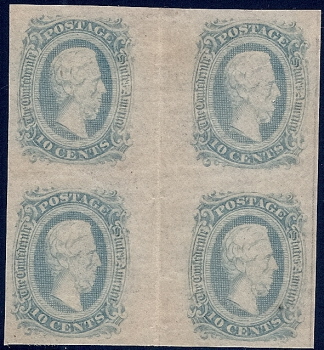 CSA #11 (AD) Gutter Block of 4 UNUSED (4-Margin Light Blue) OG LH with usual light fold in the gutter. Very Fine. |