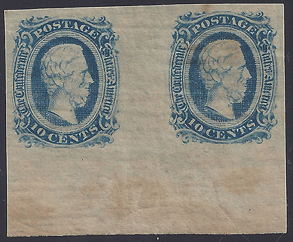 CSA #11 (AD) Gutter Pair from the bottom of the sheet (4-Margin with lower sheet margin) OG unevenly distributed NH, No Fold in the Gutter, Very Fine. |