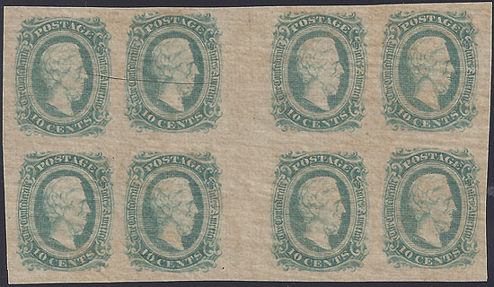 CSA #11c (AD) Greenish-Blue Horz Gutter Block of 8 UNUSED (4-Margin) Full OG, NH (minor gum toning), No Fold in the Gutter, Very Fine. |