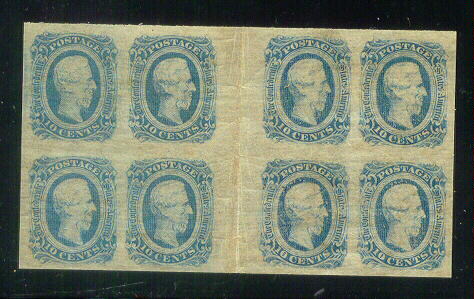 CSA #12 (AD) UNUSED Gutter Block of 8 (4-Margin) OG LH with the usual fold in the center of the gutter and gum cracks and creases. Very Fine Appearance. |