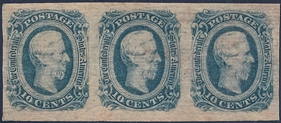 CSA #12 (AD) Horz Strip of 3 UNUSED (4-Margin) OG appears NH but with gum creases. Very Fine appearance. |