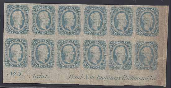 Engravers Richmond, Va.” Full OG and NH. Usual light gum