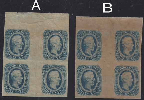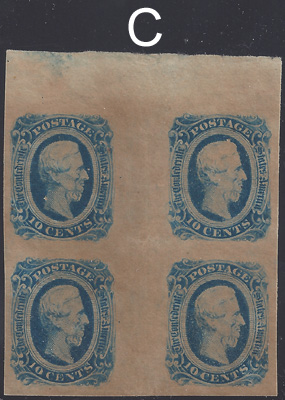 CSA #12 (KB) Gutter Block of 4 (4-Margin with Upper sheet margin) OG NH (usual gum toning and gum somewhat unevenly distributed in the sheet margin). No fold in the gutter. |
