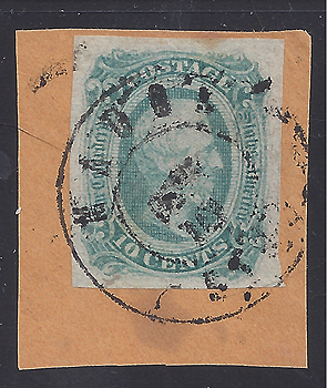 CSA #12c (AD) USED Greenish-Blue (4-Margin) tied to small piece by the small double circle Macon, Miss CDS (date not fully apparent). Very Fine. |