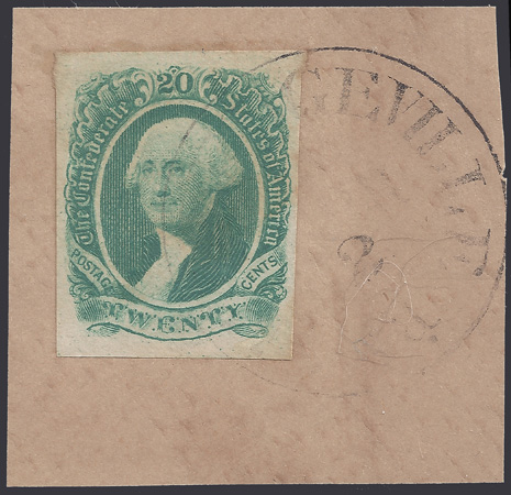 CSA #13 USED (4-Margin) tied to small piece by the Milledgeville, Ga CDS (date not fully apparent). Very Fine. PF Certificate 1982. |