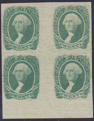 CSA 13 Gutter Block of 4 from the bottom of the sheet UNUSED (4-Margin with a large lower sheet margin) OG NH Very Fine. |