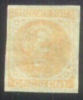 CSA #14 UNUSED 4-Margin OG Hinge Remnant but a very decent Yellow-Orange color. |